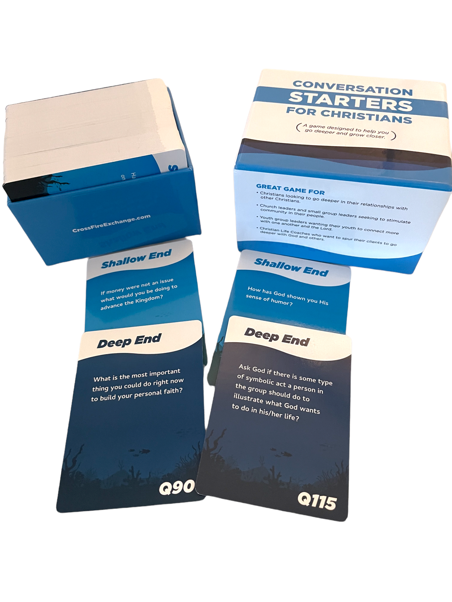 • With all the Conversation Starters out there, why another one? It’s simple! As Christians, we have a spiritual component to our lives that the typical Conversation Starter question does not address. Crossfire Conversation Starters for Christians has questions specifically designed to create connection and community and to encourage faith. Each question can cause you to think and be inspired to have deep, exciting and meaningful conversations.